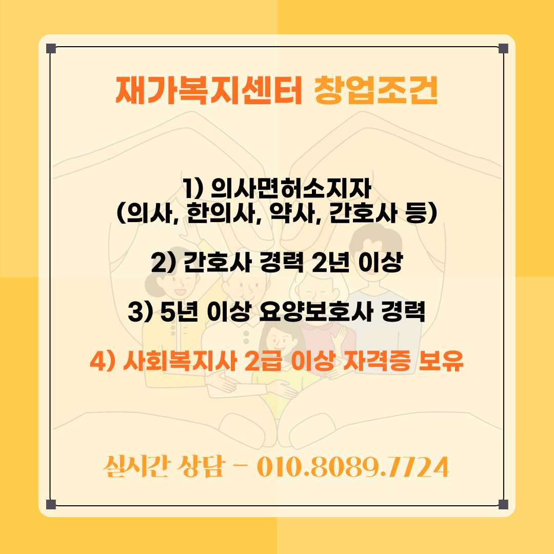 오늘은 재가복지센터 창업 조건과