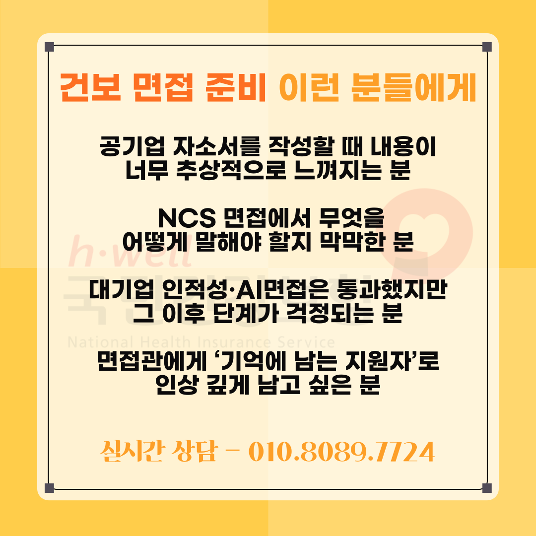 건보 면접 컨설팅을 받아볼 수 있습니다.