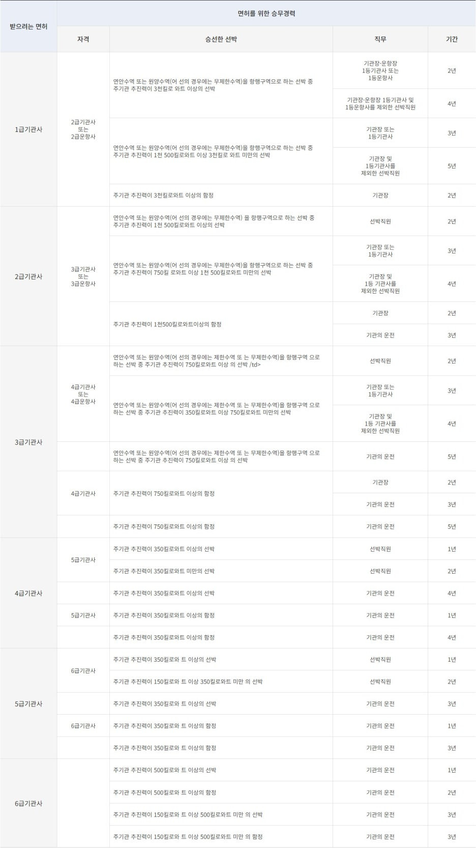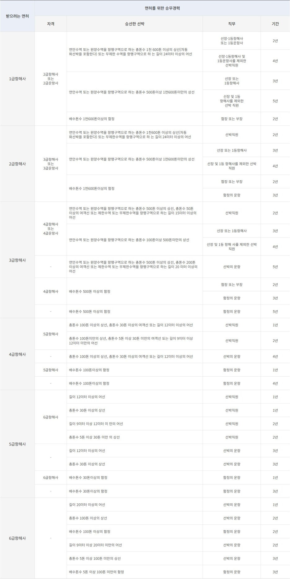 경력이 있는 일반 선원은 일정 기간 승선 경력을 쌓으면 해기사 자격증 시험 응시가 가능, 선박 규모와 경력에 따라서 응시 가능한 급수 차이가 발생