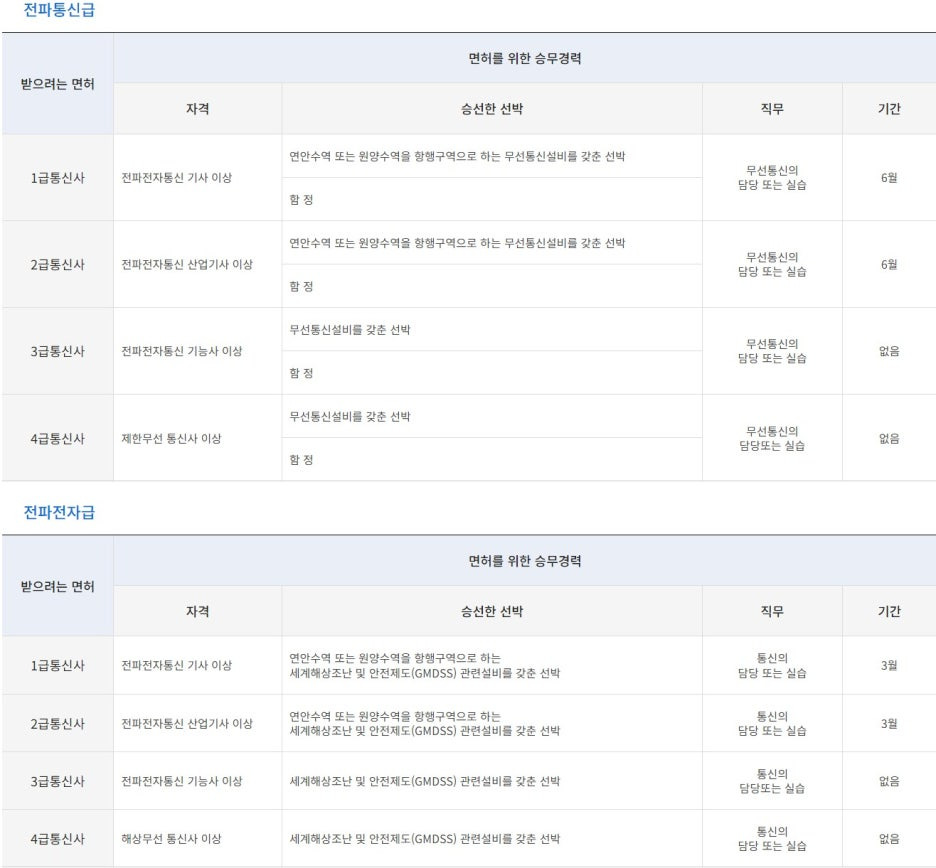 - 통신사 (1급 ~ 4급) : 선박에서 통신을 책임지며 안전한 항해를 위해서는 필수적인 역할