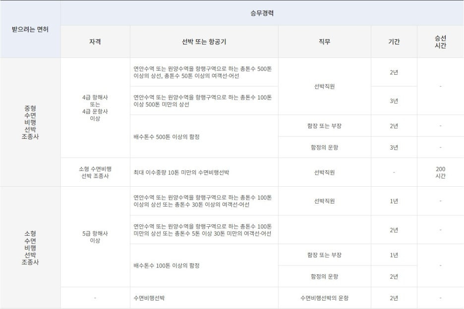- 운항사 : 항해사와 기관사의 업무를 동시에 수행할 수 있는 자격증으로 소형 선박을 주로 운항