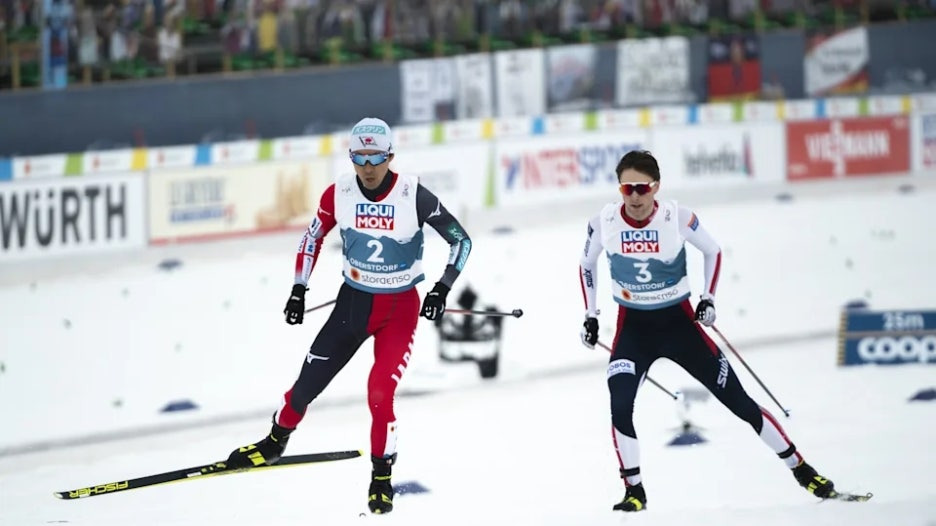 노르딕 스키를 타고 스키 점프와 크로스컨트리 스키를 수행하는 경기 종목