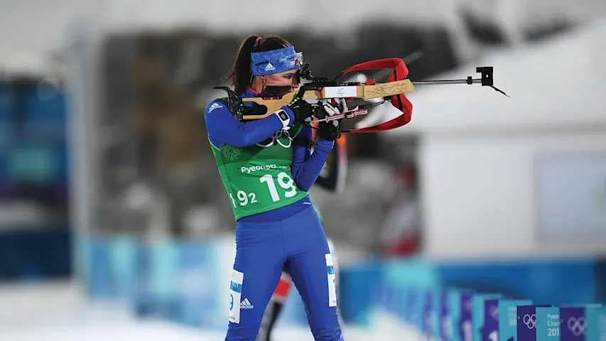 스키를 타고 달리면서 표적을 맞춰 스키를 탄 시간과 표적 적중을 합산하여 순위를 매기는 종목