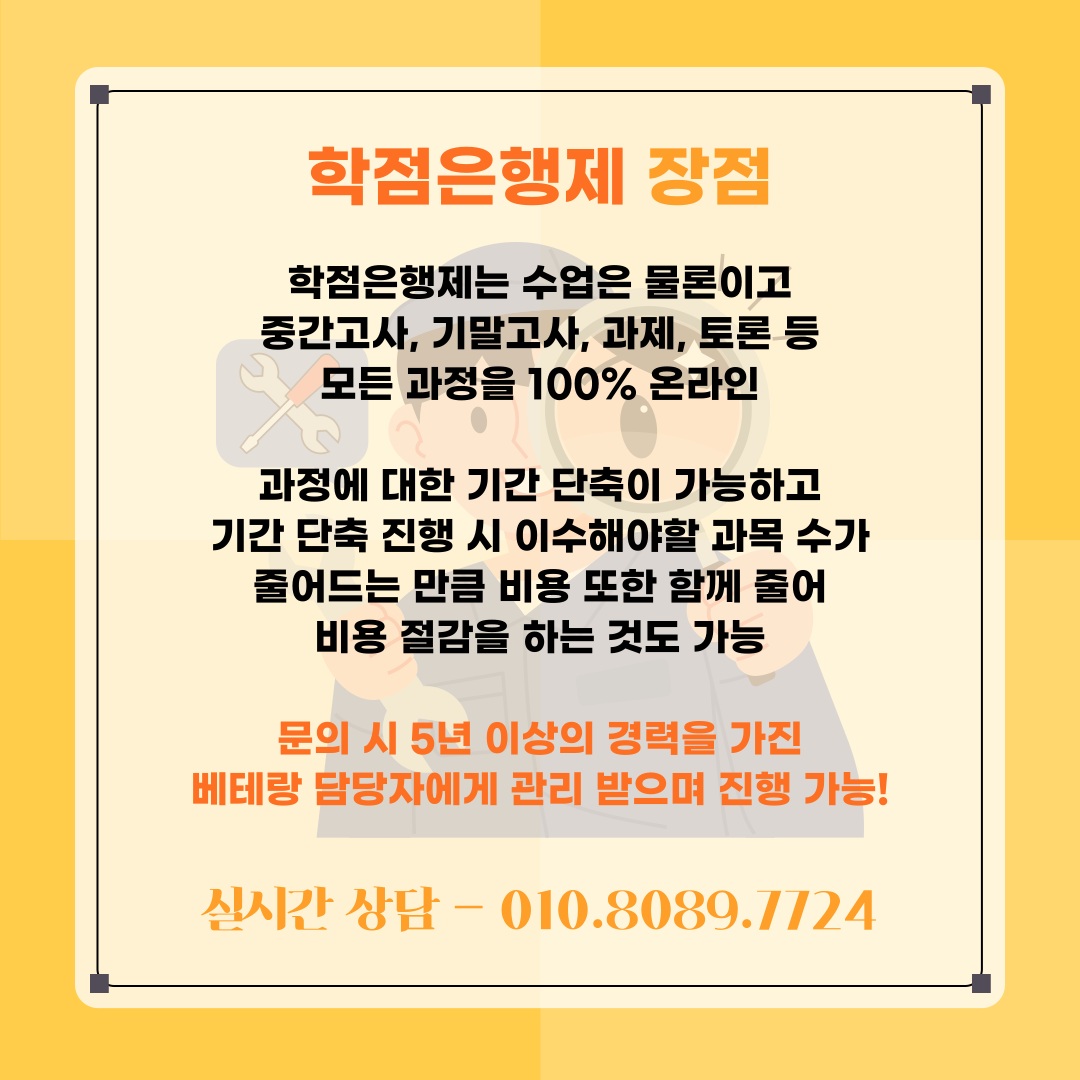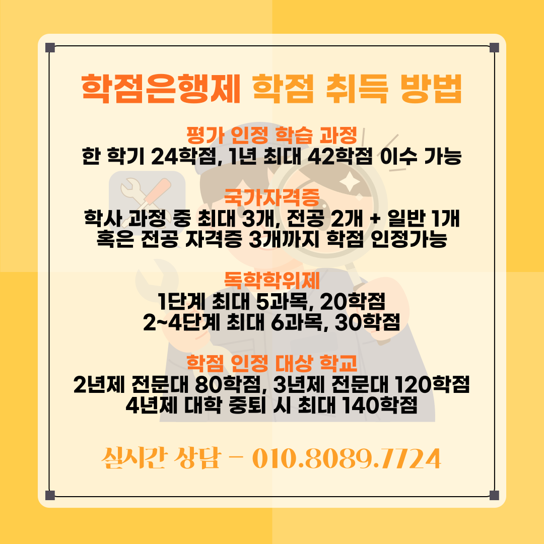 중퇴 혹은 졸업 시 최대 120학점 인정