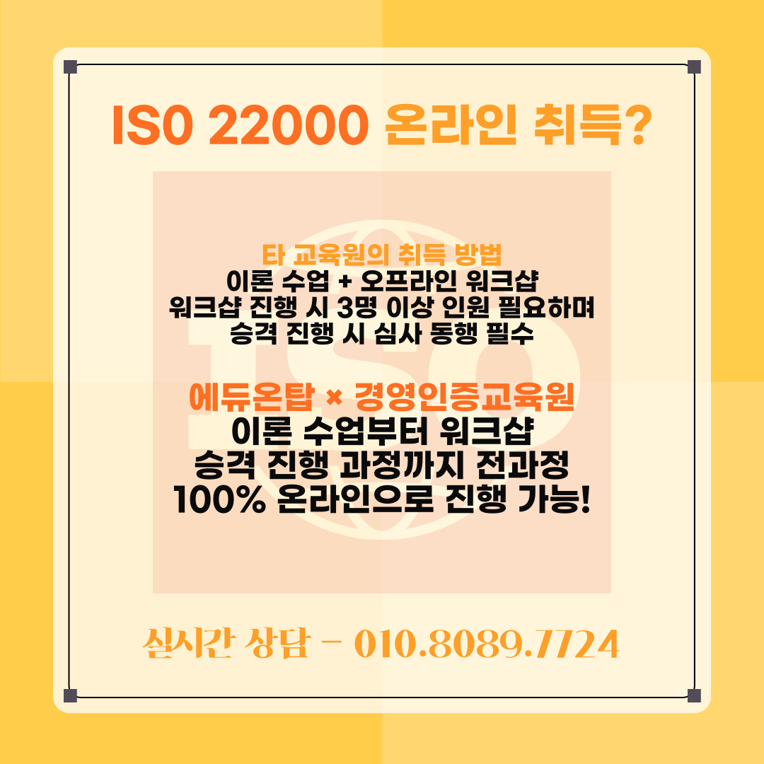 온라인으로 ISO 22000을 취득할 수 있는