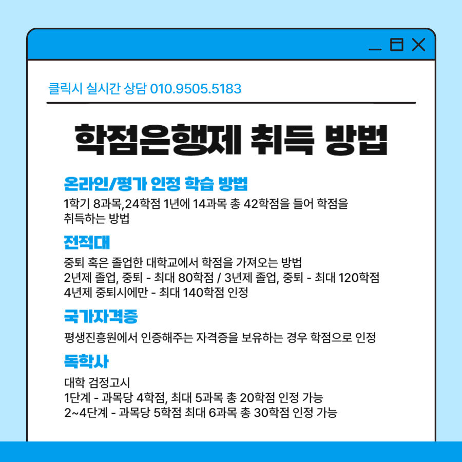 3 년제 졸업 또는 중퇴 시 최대 120학점