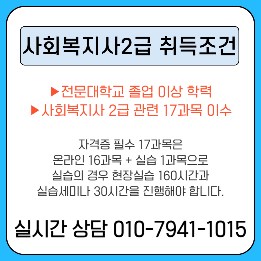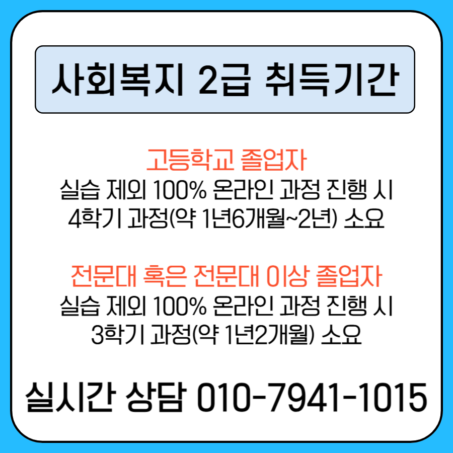 | 동대문구 사회복지사2급 자격증 온라인으로 단기간에 취득하는 방법? (0) | 2025.05.23 |