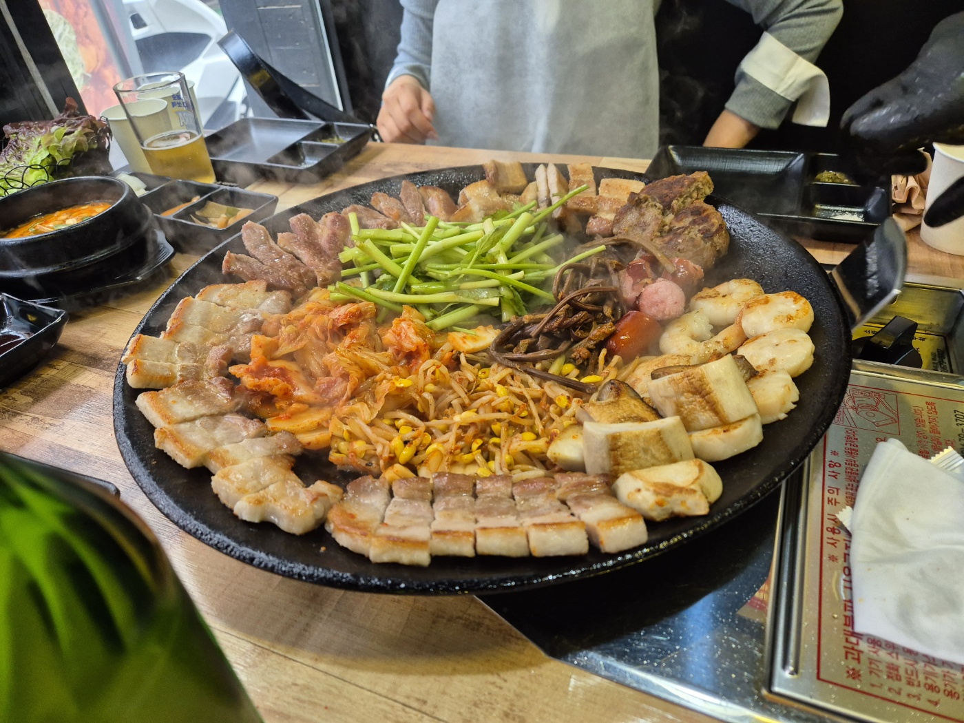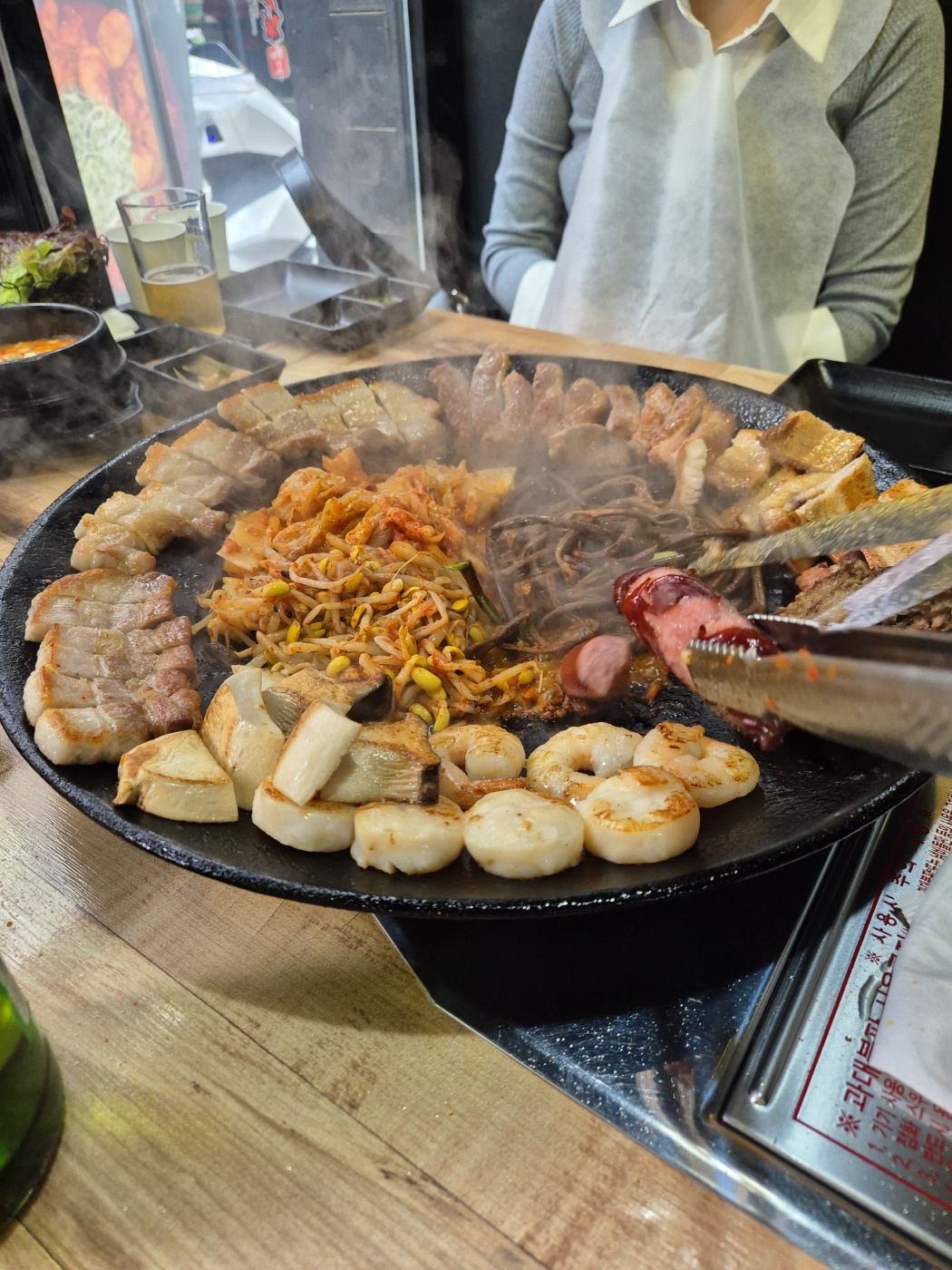 저희는 삼겹살(300g) + 목살(300g) 반판과