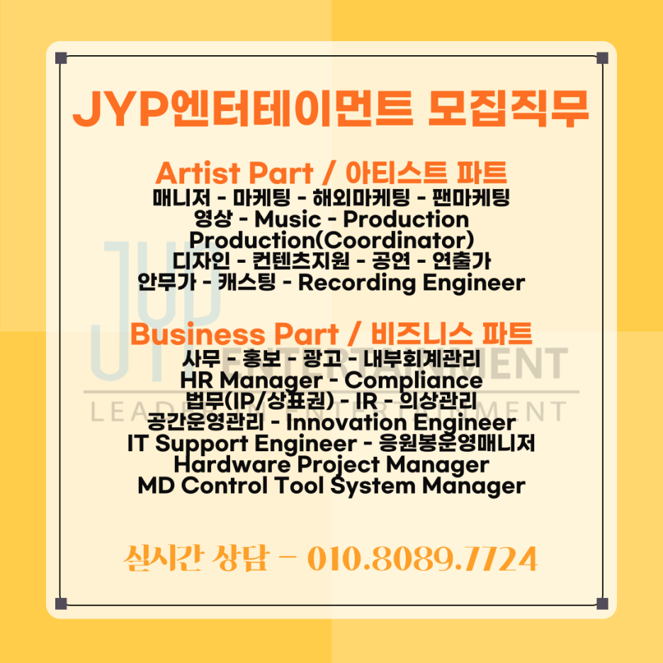 오늘은 JYP엔터테이먼트 공개채용 정보를