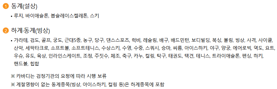 수영, 수중, 스쿼시, 승마, 씨름, 아이스하키